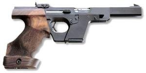 Vi bruger dels kaliber 22 i en standard pistol, dels luftpistol med komprimeret luft.